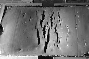 Within wet kaolin models we investigate the impact of fault spacing and overlap on the development of new faults around restraining bends within the claybox model. Cooke, Michele L., Mariel T. Schottenfeld and Steven W. Buchanan, 2013. Evolution of Fault Efficiency at Restraining Bends within Wet Kaolin, Journal of Structural Geology, doi:10.1016/j.jsg.2013.01.010. The red images are from the laser scan data. |